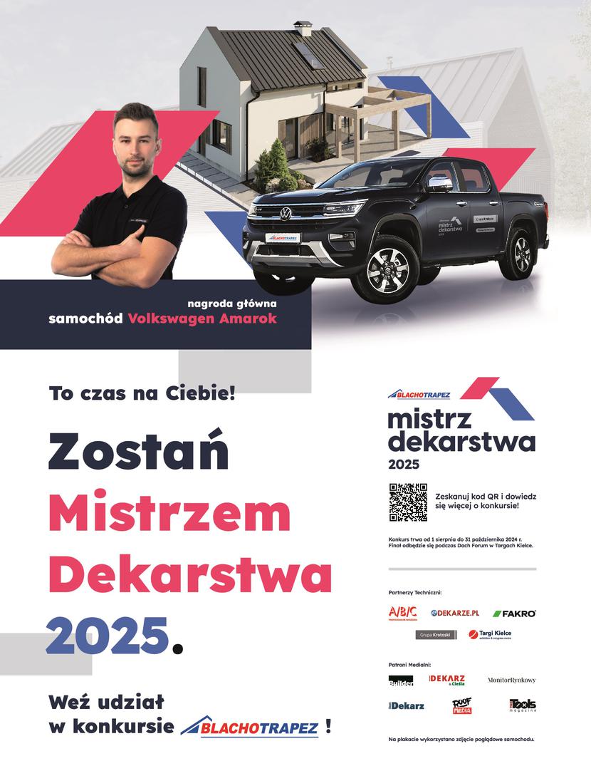 W tym roku otworzyliśmy nowe Centrum Szkoleniowe dla dekarzy w Ponicach koło Rabki-Zdroju. To kolejne 420 m kw. powierzchni, w tym sala montażowa oraz szkoleniowa. W profesjonalnie zaaranżowanej sali montażowej dekarze mogą doskonalić swoje umiejętności pod czujnym okiem mistrzów rzemiosła. W samych Ponicach przez prawie 8 lat przeszkoliliśmy ponad 10 tys. wykonawców, zarówno z Polski, jak i z zagranicy. Nowe Centrum Szkoleniowe to nowy rozdział w naszej historii. To także nowe możliwości, gdzie dekarze będą mogli zdobywać wiedzę i doświadczenie na najwyższym poziomie. To drugi tak nowoczesny obiekt obok Centrum Szkoleniowego w Brwinowie koło Warszawy. Jesteśmy także po czterech edycjach naszego autorskiego konkursu: Mistrz Dekarstwa. Chcemy w ten sposób promować zawód dekarza, kunszt dekarski oraz wspierać rozwój branży poprzez propagowanie odpowiednich metod i technik wykonywania pokryć dachowych. Na ostatnich targach Dach Forum w Kielcach mieliśmy przyjemność uhonorować Wojewódzkich Mistrzów Dekarstwa oraz zwycięzcę nagrody głównej – Mistrza Dekarstwa, Piotra Delę. Nie zwalniamy tempa i już zapowiedzieliśmy kolejną edycję konkursu Blachotrapez Mistrz Dekarstwa 2025. Zapraszamy do zapoznania się ze szczegółami na naszych mediach społecznościowych.