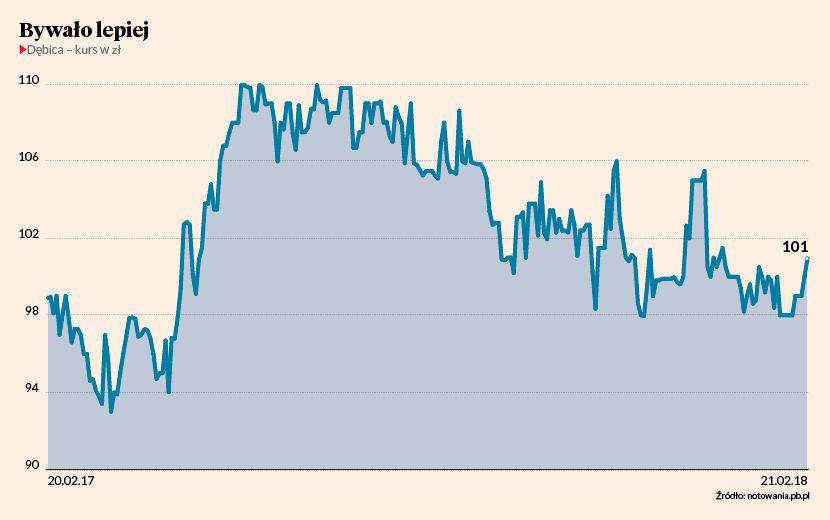 Kurs spółki wzrósł w środę o 1 proc., co na tle spadającego rynku było niezłym wynikiem — indeks sWIG80, do którego należy Dębica, spadł o 0,6 proc. Niecodzienne były obroty akcjami firmy. Sięgnęły niemal 25 mln zł, wobec średniej sesyjnej za ostatnie 6 miesięcy na poziomie 66 tys. zł. Pod tym względem spółka znalazła się w czołówce warszawskiej giełdy, wyprzedzając większość walorów z indeksu WIG20. Zwiększone zainteresowanie akcjami producenta opon można było zauważyć już w poniedziałek, kiedy wartość handlu wyniosła 3 mln zł.