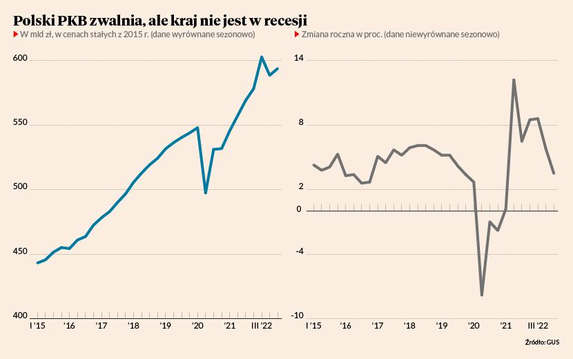 Polska wciąż należy do najszybciej rosnących krajów w Unii Europejskiej. Roczny wzrost PKB jest u nas o 2 pkt proc. wyższy niż średnio w UE, dużo wyższy niż w Czechach, Słowacji czy na Węgrzech. I to pomimo faktu, że mamy wyższą inflację niż średnia dla UE, ostro zaciskamy politykę pieniężną i doświadczamy silnych wstrząsów finansowych związanych z bliskością wojny i ryzykiem geopolitycznym.