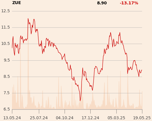 "Przy naszych obecnych założeniach (powrót >1 mld zł przychodów od 2026 roku oraz poprawa rentowności od 2H’25) cenę docelową ZUE wyznaczamy na poziomie 8,70 zł, co implikuje pozostawienie rekomendacji +Trzymaj+ (poprzednio: +Trzymaj+, 11,0 zł; m.in. obniżyliśmy założenia na 2025 ze względu na słaby 1Q’25). Zakładamy, że w najbliższych tygodniach kurs spółki będzie przede wszystkim wrażliwy na informacje z ofertowania kolejnych przetargów PKP PLK" - napisano w raporcie.