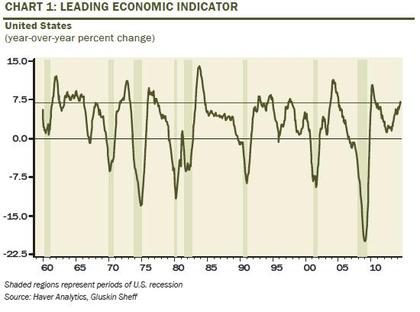 „Bazując na obecnej tendencji wyprzedzającego wskaźnika koniunktury należy się spodziewać, że do kolejnej recesji pozostały co najmniej cztery lata” – napisał David Rosenberg, analityk biura Gluskin Sheff.