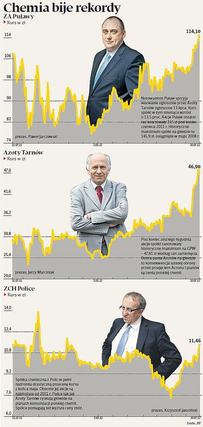Na tle innych spółek chemicznych negatywnie na giełdzie w ostatnich tygodniach wyróżniał się Ciech. Kurs spółki kierowanej przez Dariusza Krawczyka stracił w lipcu 15 proc. Według Kamila Kliszcza z DI BRE, przecena akcji Ciechu to efekt rozczarowania inwestorów, którzy liczyli na ogłoszenie wezwania na akcje spółki. Tak się jednak nie stało, co częściowo tłumaczy spadek kursu.
