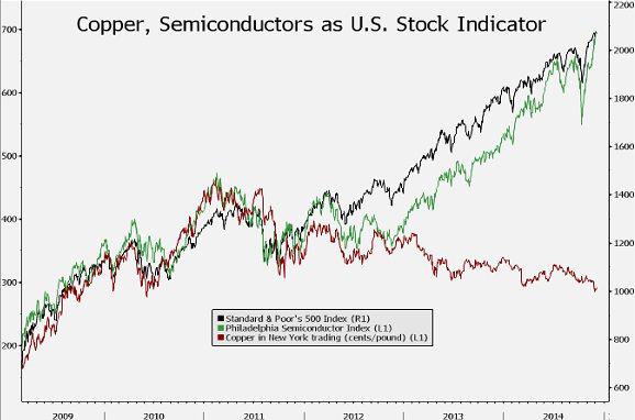 Od lutego 2011 r. notowania miedzi spadły o 37 proc. Tymczasem indeks S&P500 zyskał 56 proc., podążając ramię w ramię z indeksem branży półprzewodników (+51 proc.).