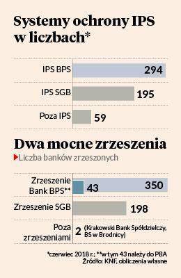 Według naszego informatora, kiedy o poprawce do ustawy dowiedział się Leszek Czarnecki, nabrał przekonania, że regulacja wymierzona jest w niego i postanowił zdetonować bombę z nagraniami. Jednak nie tylko właściciel Idea Banku poczuł się zagrożony. Również grupa kilkudziesięciu banków spółdzielczych uznała, że ktoś próbuje uszyć im buty. Chodzi o banki, które nie należą do żadnego z dwóch zrzeszeń: BPS i SGB oraz istniejących przy nich systemów ochrony IPS (Institutional Protection Scheme), które są rodzajem towarzystw ubezpieczeń wzajemnych i w zamian za wnoszone składki zasilają w płynność swoich członków w razie potrzeby. Takich działających banków, według informacji KNF, było na koniec III kwartału tego roku 59.