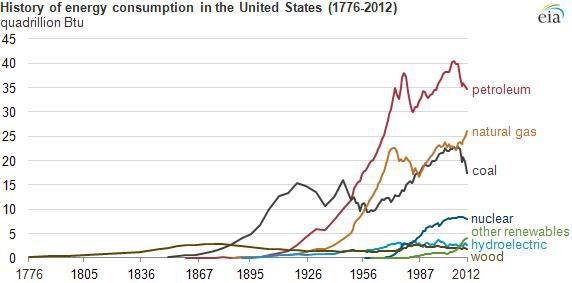 Struktura wykorzystania paliw w gospodarce amerykańskiej w ostatnich 237 latach. Źródło: EIA, MarketWatch.
