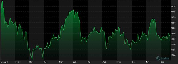 Notowania cen złota, YTD, źródło: baha.com