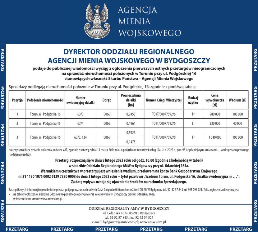 NIERUCHOMOŚĆ NA SPRZEDAŻ TORUŃ. AGENCJA MIENIA WOJSKOWEGO Komunikat partneraopublikowano: 2022-12-02 15:23PosłuchajZostań subskrybentemi słuchaj tego oraz wielu innych artykułów w pb.pl