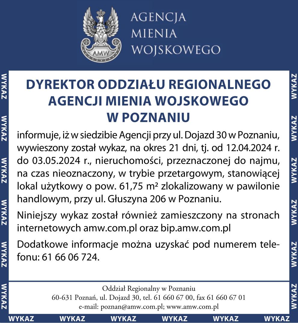 DYREKTOR ODDZIAŁU REGIONALNEGO AGENCJI MIENIA WOJSKOWEGO W POZNANIU Komunikat partneraopublikowano: 2024-04-11 14:33.PosłuchajZostań subskrybentemi słuchaj tego oraz wielu innych artykułów w pb.pl amw_poznan_11.04 amw_poznan_11.04