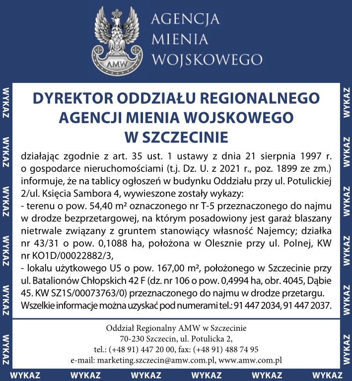 DYREKTOR ODDZIAŁU REGIONALNEGO AGENCJI MIENIA WOJSKOWEGO W SZCZECINIE Komunikat partneraopublikowano: 2022-11-29 14:06PosłuchajZostań subskrybentemi słuchaj tego oraz wielu innych artykułów w pb.pl
