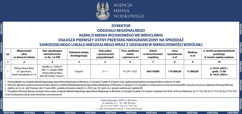Dyrektor Oddziału Regionalnego AMW we Wrocławiu ogłasza Komunikat partneraopublikowano: 2022-12-15 13:25PosłuchajZostań subskrybentemi słuchaj tego oraz wielu innych artykułów w pb.pl