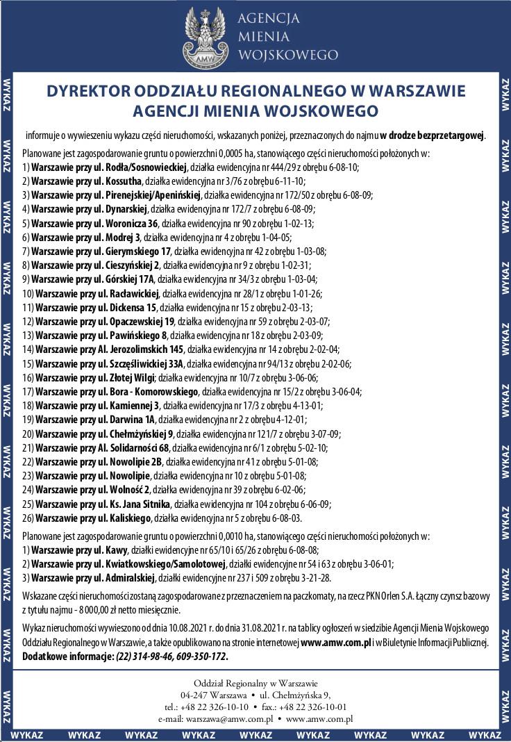 DYREKTOR ODDZIAŁU REGIONALNEGO W WARSZAWIE AGENCJI MIENIA WOJSKOWEGOkomunikat partneraopublikowano: 2021-08-09 15:27