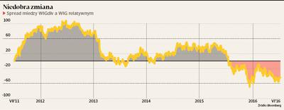Takie kryteria spełniły w ostatnim czasie Rainbow Tours, Dębica i ZPUE, a fakt, że trzy spółki skarbu państwa zastąpiły trzy, które mają prywatnych właścicieli, jest równie znamienny jak to, że od połowy ubiegłego roku WIGdiv stał się relatywnie słabszy od WIG.