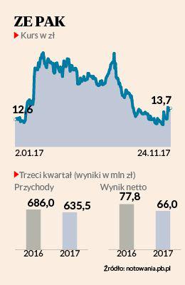 — ZE PAK podał świetne wyniki za trzeci kwartał, a jego zarząd potwierdza, że utrzymają się one w czwartym kwartale 2017 r. — mówi Paweł Puchalski, kierujący działem analiz giełdowych Banku Zachodniego WBK. Spółka w 2017 r. wypłaciła wysoką dywidendę i powinna dalej wypracowywać znaczne ilości gotówki. Problemem jest jednak paliwo. Działalność opiera na węglu brunatnym, co rodzi dwa problemy. Spalanie węgla brunatnego powoduje największą emisję dwutlenku węgla, a tym samym wymusza stosunkowo duże wydatki na uprawnienia do emisji. Drugi związany jest z tym, że węgla brunatnego nie da się przewozić na duże odległości. Elektrownie są ściśle powiązane z pobliskimi kopalniami. Złoża wykorzystywane przez ZE PAK są bliskie wyczerpania. Kombinat chce uruchomić kolejną odkrywkę, ale wywołuje to protesty społeczne i na razie utknęło przez przepychanki formalne. Po publikacji wyników za trzeci kwartał Paweł Puchalski podniósł jednak swoją wycenę akcji ZE PAK z 19,20 na 20,20 zł, cały czas zaleca jednak „trzymanie”, a nie „kupowanie” akcji, co oznacza, że dostrzega ograniczony potencjał wzrostu notowań.