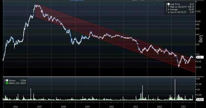 Wrześniowo – październikowe zwyżki przyniosły wybicie górą z kanału spadkowego, opisującego bessę trwającą od 2007 r. Podstawowym wsparciem pozostaje pułap 7,20 zł, będący górnym ograniczeniem kanału, w którym znajdował się kurs. Problem w tym, że to tylko jedna z dwóch możliwych interpretacji wykresu, a druga z nich nie jest już tak zachęcająca…