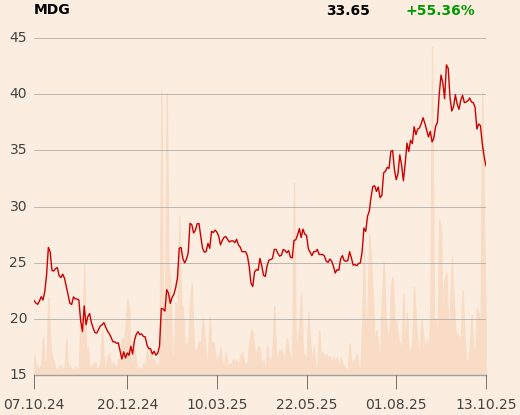 Raport został sporządzony przy cenie 34,50 zł za akcję.