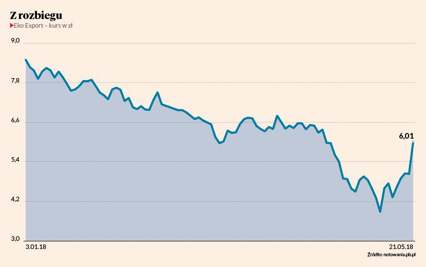 Jego wartość to od 1,26 do 3,09 mln zł. Komunikat Eko Exportu jest jak zwykle enigmatyczny, bo nie podano w nim nawet nazwy kontrahenta. To jednak wystarczyło, by notowania gwałtownie podskoczyły. Rosły już zresztą w ostatnich dniach, dzięki czemu kurs podniósł się z wieloletniego dna. Od 2014 r. notowania są w trendzie spadkowym, bo firma notuje coraz gorsze wyniki. W 2017 r., przy przychodach w wysokości 25,5 mln zł, strata operacyjna wyniosła 4,6 mln zł, a strata netto —7,4 mln zł. © Ⓟ