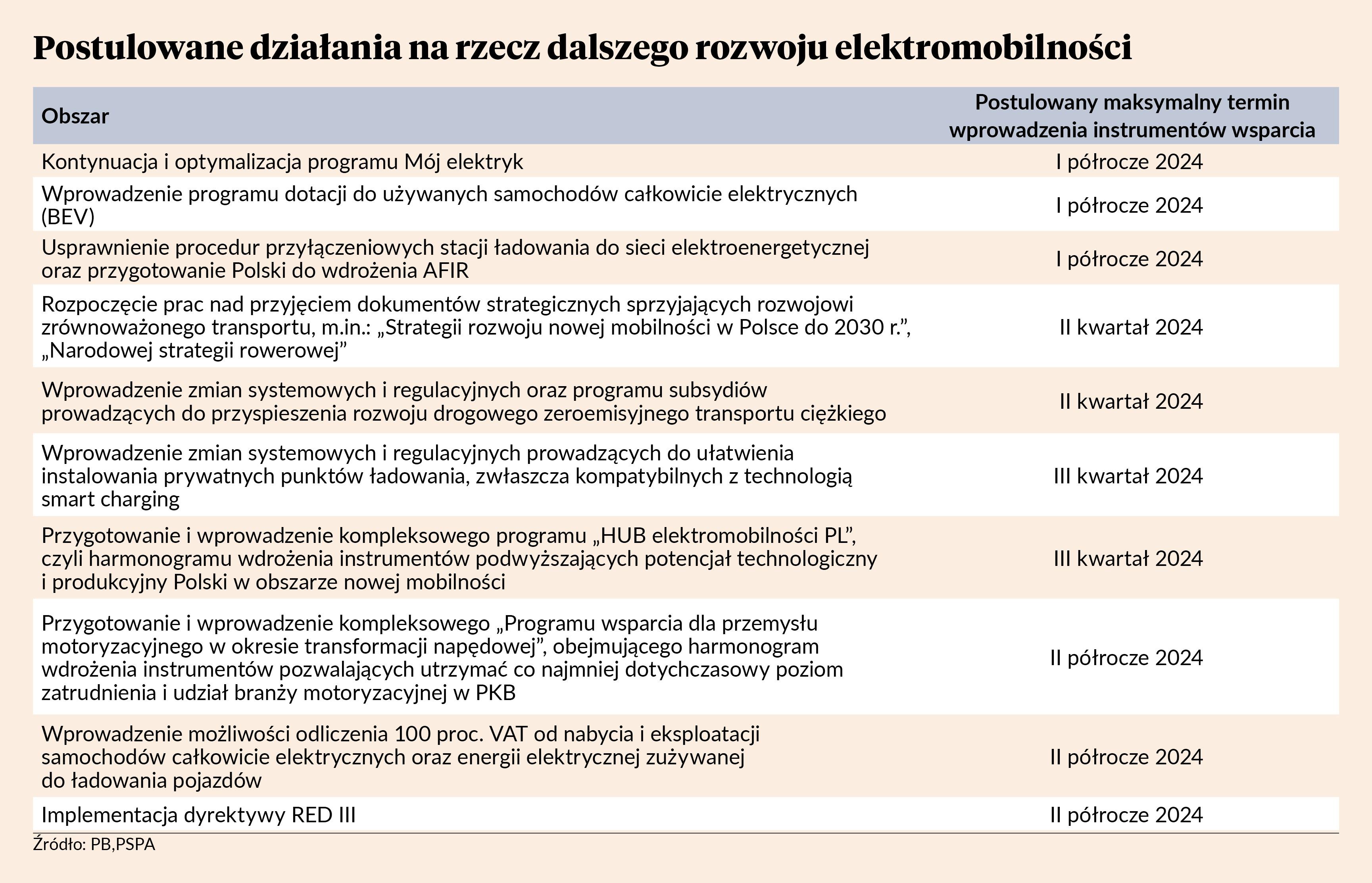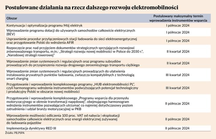 — Wychodząc naprzeciw rynkowym potrzebom, podczas Kongresu Nowej Mobilności 2023 przedstawiciele branży podpisali „7 dla elektromobilności” — adresowany do administracji publicznej apel o szybkie powzięcie niezbędnych środków wspierających transformację. Czasu na ich wdrożenie pozostało niewiele, a obowiązkiem rządzących jest pilna budowa wartości i przewag Polski w gospodarce zeroemisyjnej, w tym wsparcie przemysłu w tak newralgicznych branżach jak motoryzacja, transport i energetyka. Bez tego wsparcia i subsydiowania zielonego przemysłu Polska będzie systematycznie tracić pozycję, nie mówiąc o budowaniu przewag. Z tego względu konieczne jest przekształcenie Polski w czołowy hub produkcyjny dla sektora elektromobilności, przyspieszenie rozbudowy ogólnodostępnej i prywatnej infrastruktury ładowania, wzmocnienie pozycji polskich przedsiębiorstw transportowych w europejskim łańcuchu wartości, a także rozwój OZE i przyspieszenie transformacji sektora energetycznego w kierunku zeroemisyjnym — podkreśla Maciej Mazur, dyrektor zarządzający PSPA, prezydent AVERE (Europejskie Stowarzyszenie Elektromobilności).