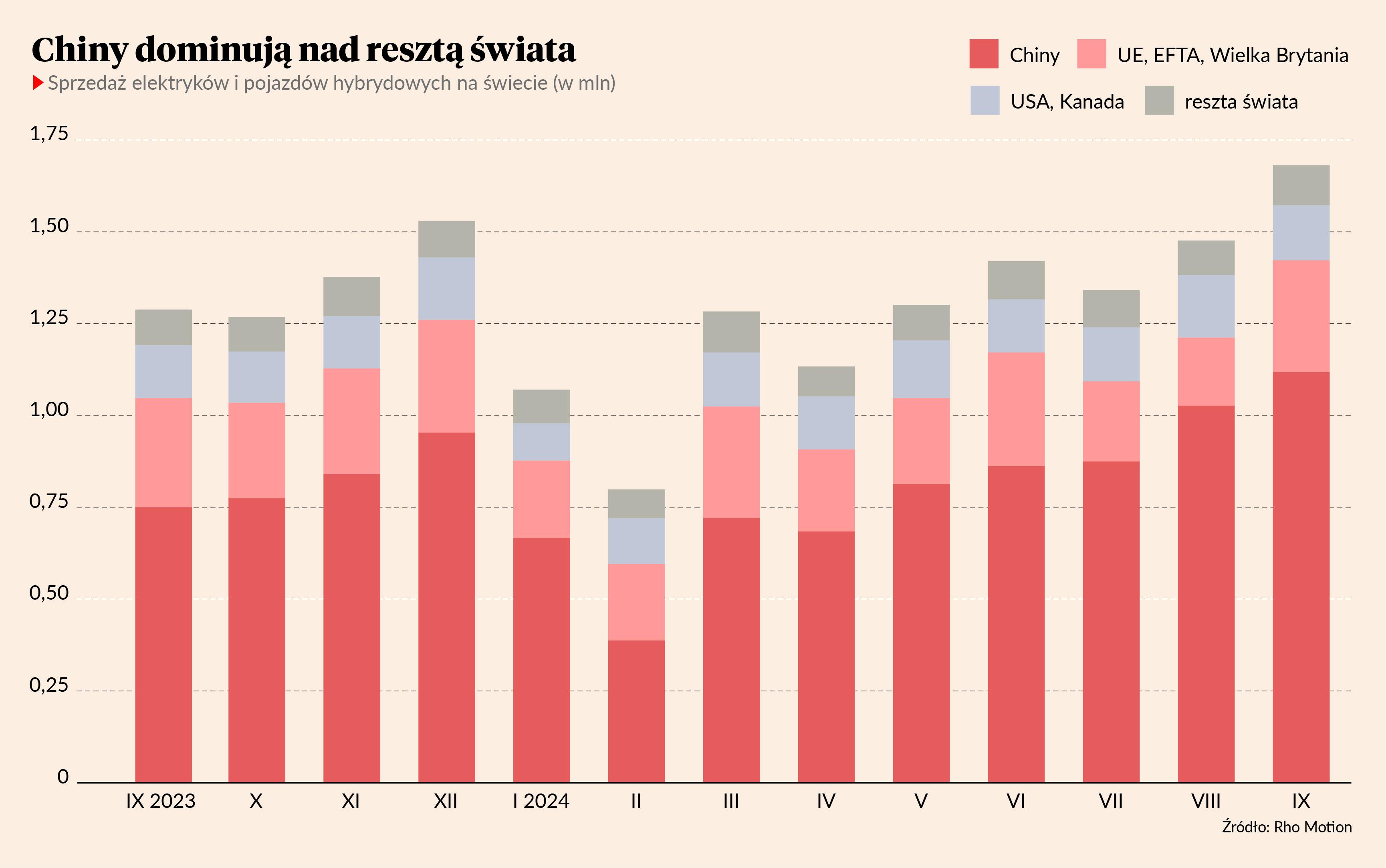 W Chinach gdzie sprzedano 1,1 mln sztuk, co stanowiło 65 proc. światowej sprzedaży. Patrząc na wyniki od początku roku, chiński rynek wyraźnie dominuje nad pozostałymi. W okresie od stycznia do września w Chinach zakupiono 7,2 mln pojazdów (wzrost o 35 proc. r/r) – wynika z danych Rho Motion.