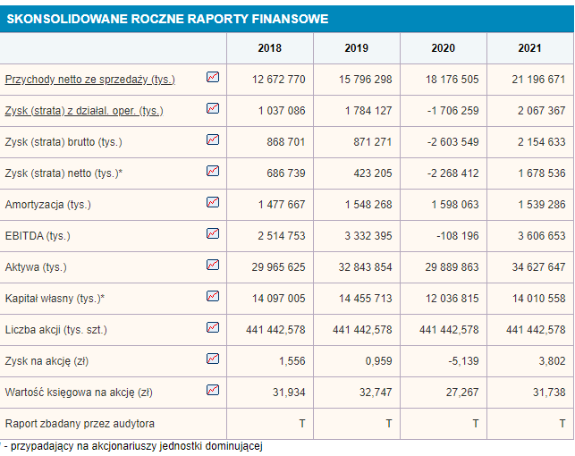 W samym IV kwartale przychody wyniosły 7,4 mld zł, EBITDA 146 mln zł, a strata netto 743 mln zł.