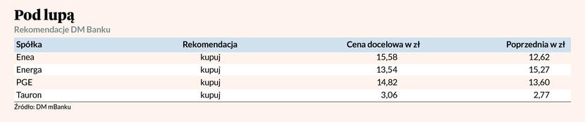 Żadna z czterech kontrolowanych przez państwo spółek energetycznych nie wypłaciła dywidendy z zysku za 2017 r. Dwie nie wypłaciły nic także za 2016 r., choć wcześniej sowicie dzieliły się zarobkiem. Nie ma też szans na dywidendy za 2018 r., a pewnie również za 2019 r. Jednak na horyzoncie majaczy pierwsza premia, uważa Kamil Kliszcz, dyrektor w Domu Maklerskiego mBanku, który od dłuższego czasu jest optymistycznie nastawiony do atrakcyjności inwestycyjnej akcji firm z sektora. Przez ostatnich 12 mesięcy jego rekomendacje dla Energi, Enei, PGE i Tauronu brzmiały co najmniej „trzymaj”, a obecnie w komplecie obowiązują „kupuj”. Lista argumentów „za” jest długa.