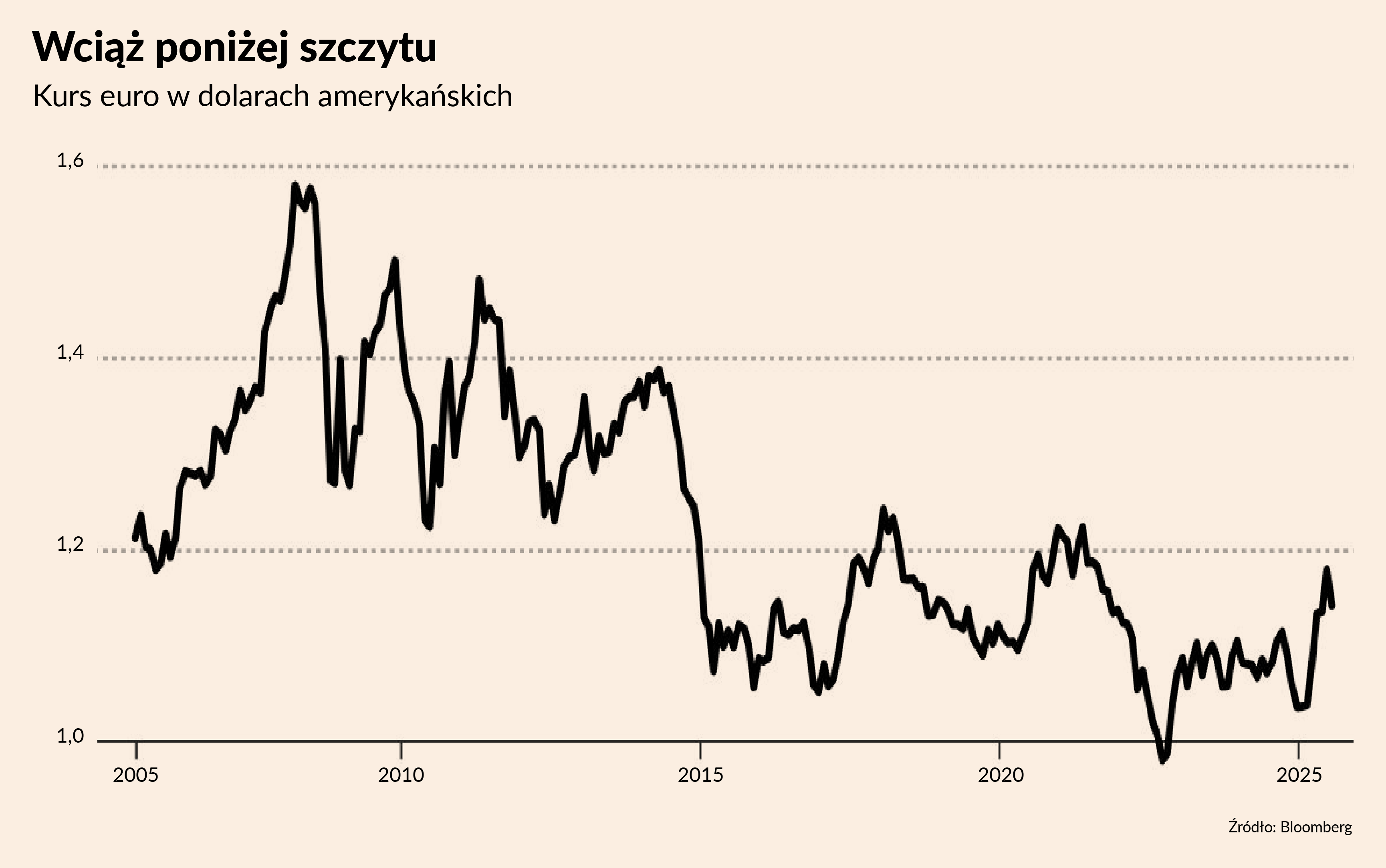 Ostatnie zawirowania handlowe wywołane w Waszyngtonie umocniły wspólną europejską walutę, a część polityków w Brukseli i Frankfurcie zaczęła mówić o „globalnym momencie euro”. Prezeska Europejskiego Banku Centralnego Christine Lagarde w maju ogłosiła, że niepewność wokół roli dolara otwiera szansę na wzmocnienie międzynarodowej pozycji euro – i przedstawiła plan działań. Temat trafił na czerwcowy szczyt UE, gdzie przywódcy wyrazili poparcie, po czym przekazali szczegóły do dalszych prac urzędnikom.
