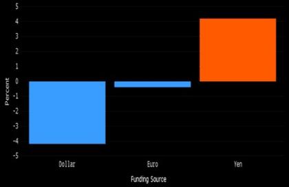 Od dnia wyborów prezydenckich za oceanem strategia zakupu koszyka wysoko oprocentowanych walut (tzw. carry trade) za dolara przyniosła 4,4 proc. straty, w związku ze spekulacjami że polityka Donalda Trumpa wesprze wzrost i inflację w USA. Ta sama strategia (oparta na kupnie walut Brazylii, Indonezji, RPA i Turcji), ale finansowana kredytem w euro, przyniosła 0,6 proc. strat. W przypadku finansowania w jenie pozwoliła tymczasem na osiągnięcie 4,1-procentowego zysku. Po wyraźnym osłabieniu japońskiej waluty w ostatnich tygodniach i wobec perspektywy zawirowań politycznych w Unii Europejskiej inwestorzy coraz chętniej zaczynają jednak upatrywać najlepsze źródło taniego finansowania nie w jenie, a w euro, donosi agencja Bloomberg.