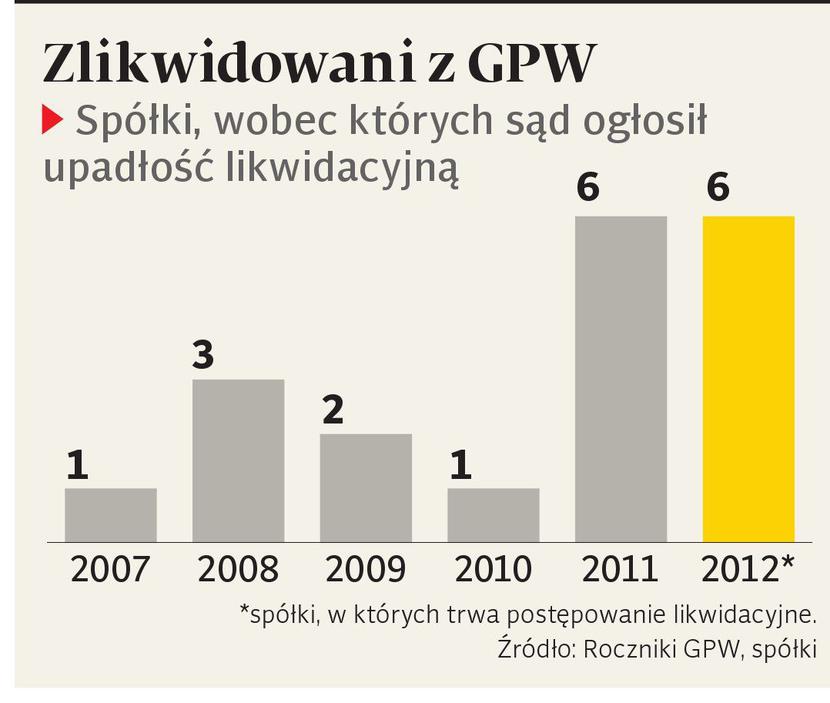 Przykład właściciela marek Alpinus i Campus jak w soczewce skupia przyczyny upadłości zdecydowanej większości firm, które w tym roku samodzielnie (tak było najczęściej) składały wniosek o upadłość lub wniosek taki składali jej wierzyciele. Tylko w tym roku 20 spółek z warszawskiej giełdy straciło zdolność do terminowej spłaty zadłużenia, w tym w siedmiu przypadkach skończyło się to sądową decyzją o likwidacji (w jednym — DSS — po pewnym czasie zmieniono formę upadłości na układową). To zresztą niepełny obraz sytuacji, bo drugie tyle wniosków o upadłość złożyły spółki zależne giełdowych grup — np. Poldim, należący do Trakcji-Tiltry, PRDiM z grupy Mostostalu Zabrze czy wianuszek spółek z grupy PBG. Zdecydowana większość firm, które zbankrutowały, to zresztą przedstawiciele branży budowlanej, przede wszystkim te firmy, które były zaangażowane w budowę dróg. Na czarnej liście są też przedstawiciele sektora nieruchomości, wobec którego banki mocno ograniczyły kredyt zaufania. Co może być trochę zaskakujące, na liście jest też nieco więcej spółek z rynku głównego, a nie NewConnect (na obu platformach liczba notowanych spółek jest porównywalna). Częściowo można tłumaczyć to tym, że na małej giełdzie biznesy są mniej rozwinięte i mniej zadłużone (jeśli w ogóle), a fiasko nie prowadzi do upadłości i likwidacji, ale tylko do zmiany szyldu. Giełda nie jest pod względem upadłości wyjątkiem — w trzecim kwartale sądy w Polsce ogłosiły upadłość prawie 200 firm. To o jedną piątą więcej niż przed rokiem. Przez pierwsze dziewięć miesięcy bankrutów uzbierało się ponad 600, a jak szacuje firma Coface Poland, w całym roku będzie to 850-900.