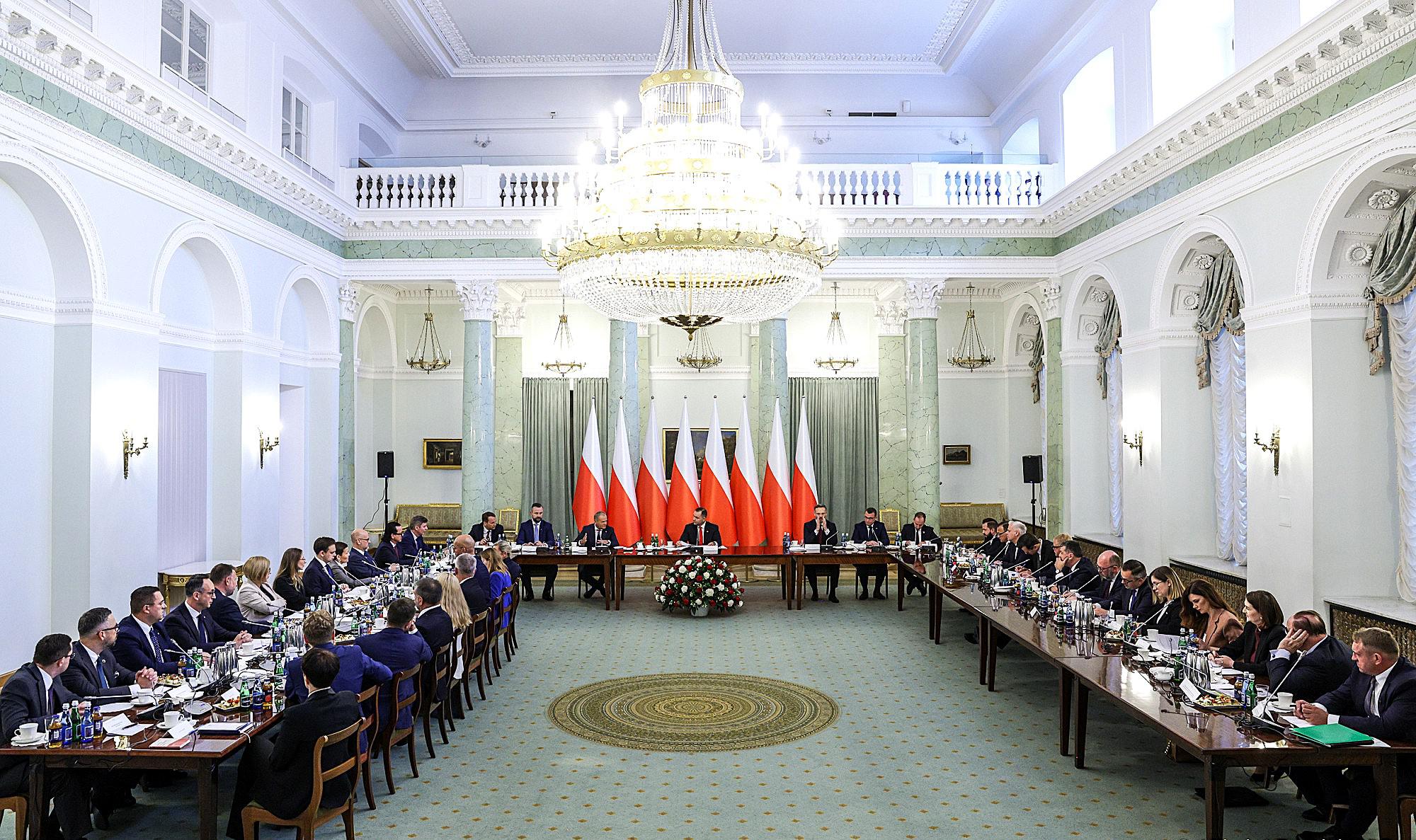 Prezydent zapowiedział, że z konstytucyjnej furtki RG będzie korzystał cyklicznie. Miejmy nadzieję, że nie częściej niż np. raz na kwartał, taką częstotliwość Polacy jakoś wytrzymają. Widać było, że Karolowi Nawrockiemu doskonale odpowiada rola nadzorcy i szefa Donalda Tuska, chociaż to jedynie iluzja sytuacyjna. Charakterystyczny był obraz RG w zestawieniu choćby z ostatnim jej posiedzeniem pod przewodem Andrzeja Dudy, z 13 lutego 2024 r. Wtedy orszak prezydencki standardowo stanowiło ścisłe kierownictwo KPRP, w tym jak zawsze szef Biura Bezpieczeństwa Narodowego. W środę obecny szef Sławomir Cenckiewicz nie został jednak delegowany – odegra pierwsze skrzypce podczas posiedzenia Rady Bezpieczeństwa Narodowego – natomiast Karol Nawrocki usadził za długim stołem łącznie aż 16-osobowy osobisty pararząd, niewiele mniejszy liczebnie od konstytucyjnej Rady Ministrów. Obecność dziesiątki powołanych niedawno doradców prezydenta można zrozumieć, ale bez żadnego trybu został do nich doproszony również Marcin Horała, poseł PiS, jako ekspert od CPK.