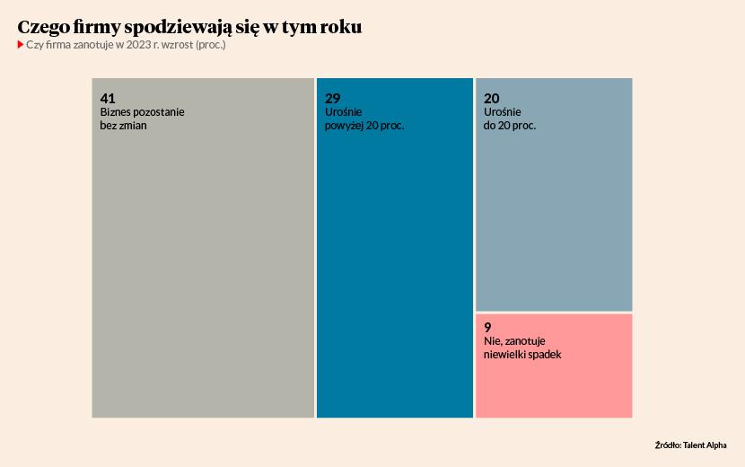 Sytuacja nie jest jednak dobra. 78 proc. firm martwi się recesją gospodarczą, prawie co piąta obawia się, że klienci opóźnią lub odwołają projekty. Połowa firm twierdzi, że urośnie, połowa, że biznes pozostanie bez zmian lub lekko się skurczy. 43 proc. nie widzi szans na nowe zlecenia i taki sam odsetek skarży się, że projekty zostały ścięte. Aż 41 proc. szacuje, że znalezienie nowego projektu dla specjalisty zajmie ponad miesiąc.
