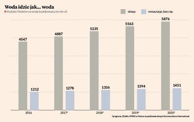 Rocznie na wodę butelkowaną wydajemy ponad 6,1 mld zł (dane Euromonitora International), z czego prawie 4,9 mld w sklepach, a resztę m.in. w restauracjach.