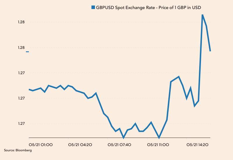 Funt umacniał się o 0,7 proc. do 1,2815 USD. Wcześniej notowano go po 1,2725 USD. Obecnie umacnia się o 0,2 proc. do 1,2755 USD.
