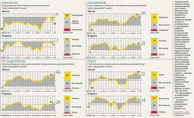 Wreszcie — po raz pierwszy w historii badania — dodatnie jest też saldo dotyczące prognoz dla inwestycji. Obecnie 12 proc. przedsiębiorstw twierdzi, że w ciągu najbliższych sześciu miesięcy zwiększą nakłady na rozwój, a tylko 9 proc. chce je zmniejszyć. W poprzednimkwartale było to odpowiednio 12 i 18 proc.