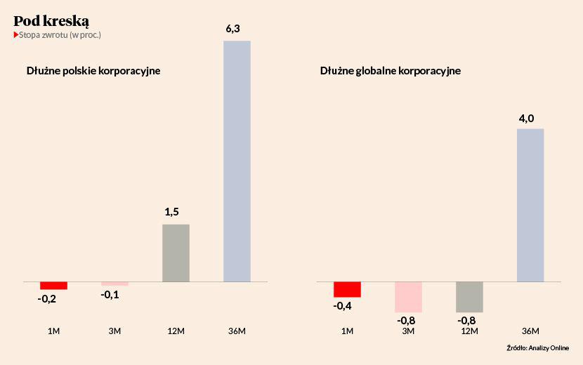 O poprawę wyników będzie trudniej, jeśli utrzyma się utrzyma się niechęć do bardziej ryzykownych aktywów, która uderza w ceny polskich obligacji skarbowych. Stanowią one poduszkę płynnościową dla funduszy obligacji korporacyjnych.
