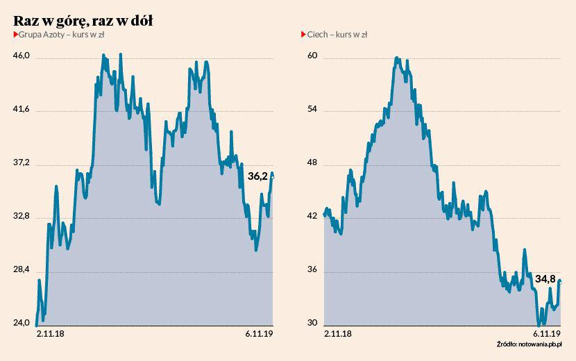 Drugim czynnikiem napędzającym wzrost wyników Azotów były niskie ceny gazu, czyli głównego surowca wykorzystywanego przy produkcji nawozów azotowych. Gaz jest zresztą ważny także dla Ciechu, który wykorzystuje go do celów energetycznych. Jeszcze pod koniec 2018 r. notowania gazu na Towarowej Giełdzie Energii przekraczały poziom 100 zł za 1 MWh, we wrześniu cena na tzw. rynku dnia następnego spadła w okolice 40 zł. Zarówno Ciech, jak i Azoty podkreślają, że dobra koniunktura na rynku gazu miała istotny wpływ na wyniki osiągane w ostatnim czasie.