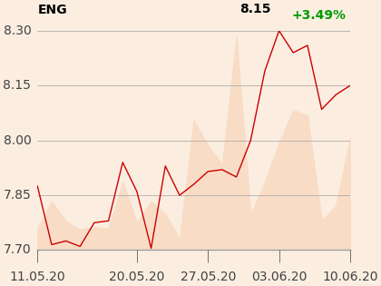 Mocno rosną akcje Enei. Spółka podała dziś wstępne wyniki za I kwartał. Firma zanotowała w tym okresie 4,6 mld zł przychodów, 913 mln zł EBITDA oraz 445 mln zł zysku netto, przypisanego akcjonariuszom jednostki dominującej.