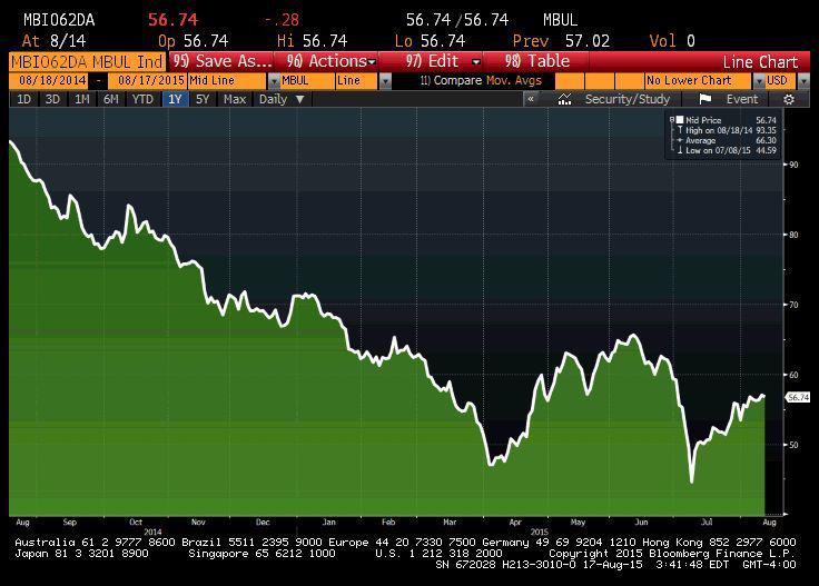 Cena rudy żelaza rosła przez ostatnie pięć tygodni po tym, jak wcześniej spadła do najniższej wartości od co najmniej 2009 roku. Pomógł w tym wzrost cen stali w Chinach. W ubiegłym tygodniu rząd Chin zdewaluował jednak juana co wywołało obawy spadku popytu na surowce denominowane w dolarach.