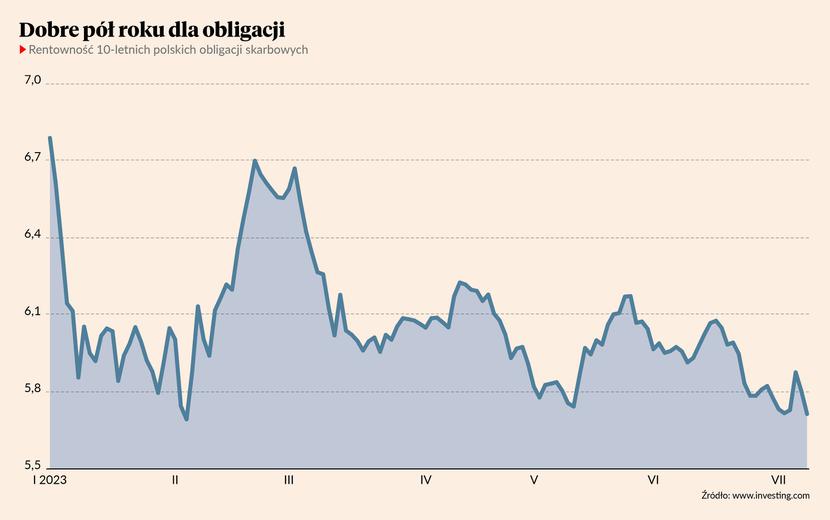 – Z jednej strony mamy mocną dezinflację, która się potwierdza, jest wręcz mocniejsza od oczekiwań. A z drugiej strony nastawienie banku centralnego jest bardziej łagodne niż można było się spodziewać. To przełoży się na spadek rentowności obligacji. Zwłaszcza w III kwartale, kiedy dynamika spadku inflacji powinna być wciąż mocna – mówi Mirosław Budzicki.