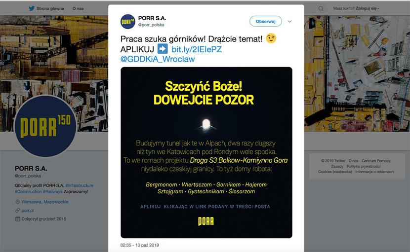Na budowach dróg, biurowców i przy remontach linii kolejowych pracuje wielu Ukraińców. To jednak nie wystarczy, zwłaszcza że wielu pracowników zza wschodniej granicy może wkrótce wyjechać do pracy w innych krajach. Wykonawcy inwestycji infrastrukturalnych coraz częściej szukają także kadry w Polsce, ale w innych sektorach przemysłu. Przed laty w budowie stołecznego metra uczestniczyli górnicy. Obecnie przedsiębiorcy chętnie zatrudnią ich do drążenia tuneli drogowych. Grupa PORR opublikowała nawet ogłoszenie napisane śląską gwarą (patrz: grafika).