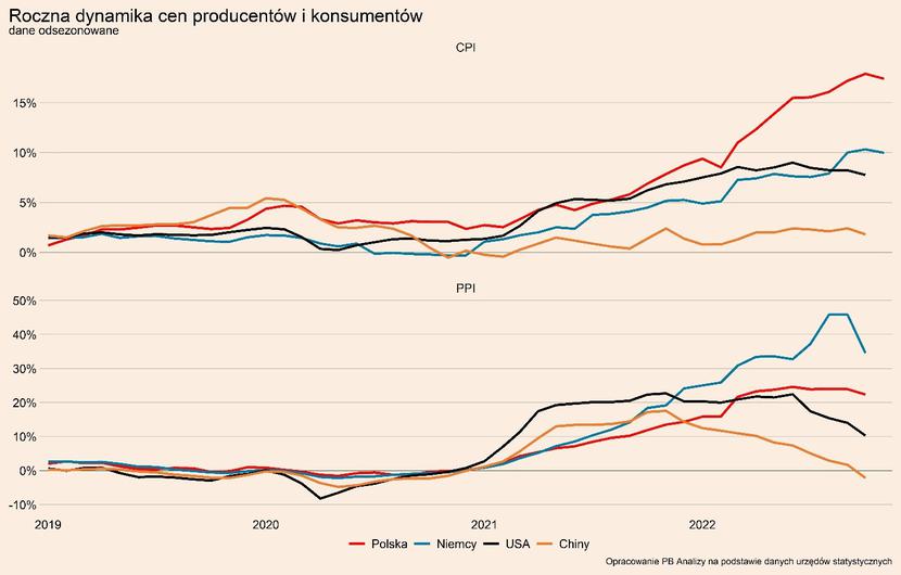 Podsumowując, gospodarka obecnie znajduje się pod wpływem wewnętrznych procesów dostosowawczych. Pod wpływem inflacji zaczyna hamować sprzedaż detaliczna, wkrótce dotknie to produkcji, a spadek popytu zaczyna jednocześnie dołować ceny. W przypadku otwarcia Chin możliwe scenariusze mają skrajnie różne konsekwencje dla światowej gospodarki. To który się zrealizuje, zależy od dalszej polityki Pekinu oraz rozwoju epidemii w Państwie Środka.