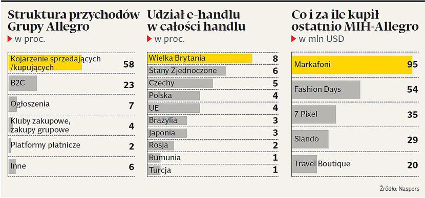 W Polsce marki Allegro miały 0,86 mld zł przychodu, co dało spółce 5 proc. udziału w całości polskiego e-handlu. Grupa Allegro z roku na rok umacnia przy tym swoją pozycję w strukturze Naspersa.