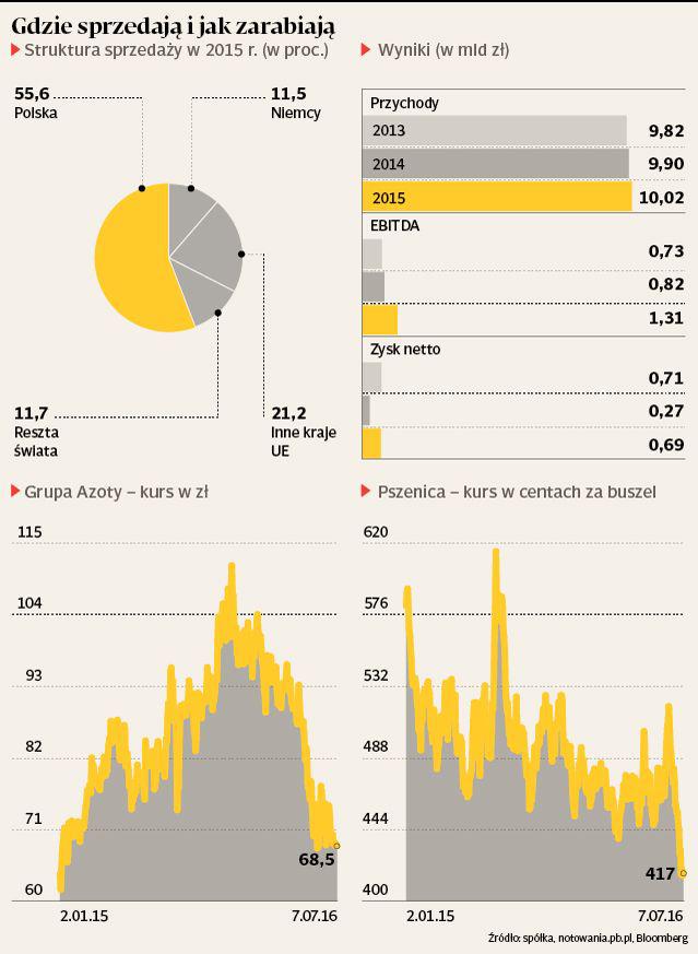 Niedawno amerykański Departament Rolnictwa podwyższył prognozy plonów zbóż na świecie. Nieco wcześniej podobny raport opublikowała Międzynarodowa Rada Zbożowa. W rezultacie i tak niskie ceny pszenicy jeszcze spadły do poziomu nienotowanego od sześciu lat. Najniżej od prawie półtora roku znalazł się natomiast kurs Grupy Azoty. Analitycy podkreślają jednak, że prosta zależność cen zbóż i popytu na nawozy w przypadku kontrolowanej przez skarb państwa firmy nie jest tak jednoznaczna. Duży wpływ na wyniki ma bowiem liberalizacja rynku błękitnego paliwa.