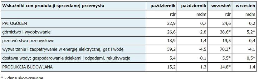 Ekonomiści w przeprowadzonej przez PAP Biznes ankiecie prognozowali, że ceny producentów w ujęciu rocznym w październiku wzrosły o 23,5 proc., a w ujęciu miesięcznym wzrosły o 1,0 proc.