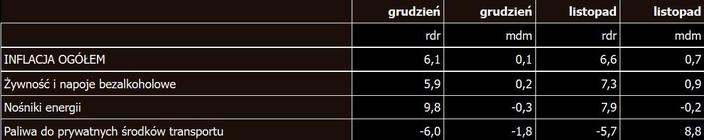 Poniżej poszczególne składniki wskaźnika inflacji za grudzień i listopad 2023 r.