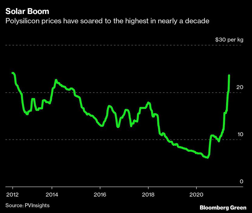 Według szacunków Bloomberga, ceny modułów słonecznych wzrosły o 18 proc. od początku 2021 r., po spadku o 90 proc. w poprzedniej dekadzie. To następstwo czterokrotnego wzrostu kosztów polikrzemu. Grozi to opóźnieniem projektów i spowolnieniem wykorzystania energii słonecznej, co nie jest optymistycznym sygnałem dla działań mających na celu wyhamowanie zmian klimatycznych. W samych Indiach może to wpłynąć na około 10 gigawatów projektów, co odpowiada ponad jednej czwartej obecnej mocy w tym kraju.