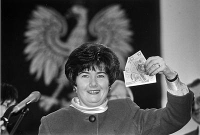 Jednocześnie od 1990 r. rozpoczęto bicie i magazynowanie monet, których jednoczesne wpuszczenie na rynek gwarantowało powodzenie operacji. Projektantkami wizerunków monet są Stanisława Wątróbska-Frindt (awers) oraz Ewa Tyc-Karpińska (rewers).