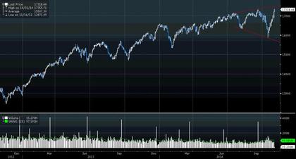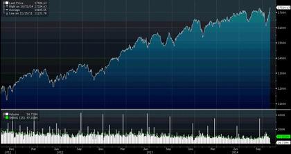 Notowania wskaźnika Dow Jones. Źródło: Bloomberg.