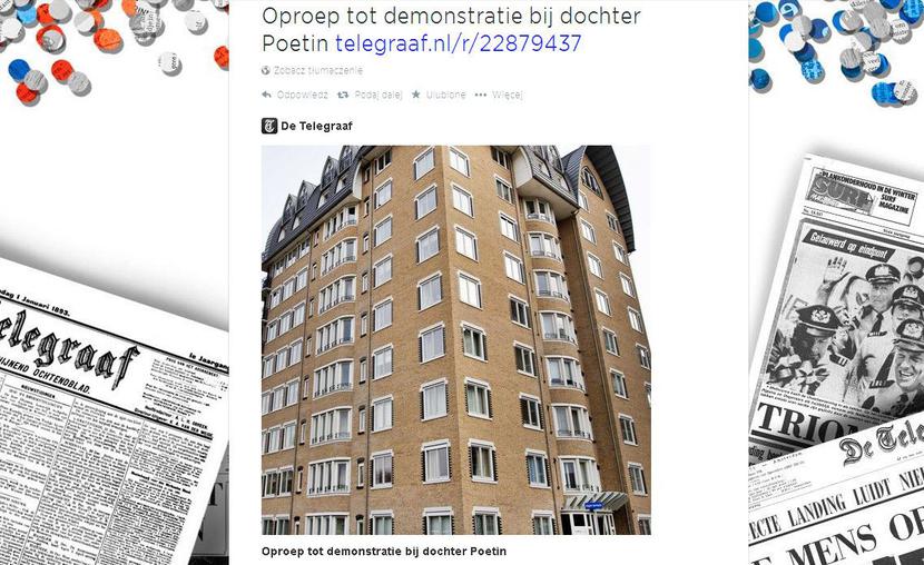 Przejawy chęci ukarania Marii Putin mają w Holandii miejsce już od kilku dni. Wcześniej jednak jej adresem i zdjęciem bloku, w którym mieszka wymieniali się internauci na serwisach społecznościowych. Wzywali się wzajemnie do protestów pod jej domem.