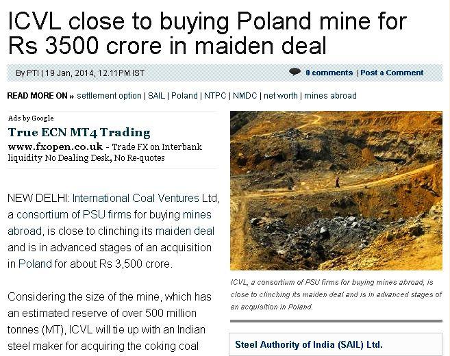 ICVL to konsorcjum firm, stworzone w celu przejmowania kopalni zagranicznych. Polska kopalnia ma dysponować złożem ponad 500 mln ton węgla, dlatego ICVL miał połączyć siły z indyjską hutą stali. Wartość transakcji określono na 3500 crore rupii, czyli w przeliczeniu ok. 1,7 mld zł.