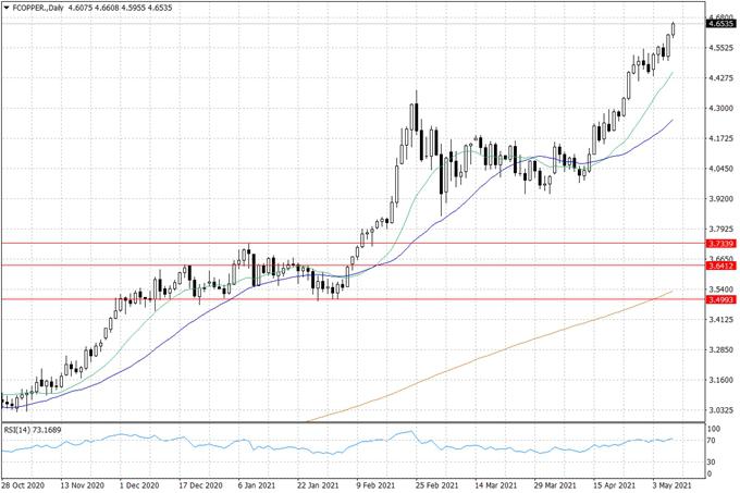 Dla chińskiego przemysłu obecne poziomy cen miedzi są już „progiem bólu”, przy którym hamuje popyt. O ile krótkoterminowa korekta byłaby uzasadniona w obliczu obecnego wykupienia rynku miedzi, to długoterminowe trendy sprzyjają wzrostom cen tego metalu. Miedź jest jednym z beneficjentów transformacji energetycznej, a podaż metalu może w najbliższych latach nie nadążać za popytem.
