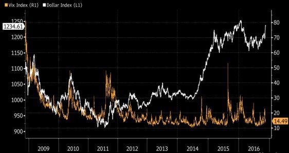Prowadzone po kryzysie finansowym niekonwencjonalne łagodzenie polityki przez Fed zmniejszyło zmienność na rynkach finansowych, spychając wskaźnik VIX do średnio notowanych w tym roku 16 punktów z rekordowych 81 punktów notowanych osiem lat temu. Jednocześnie skłoniło jednak inwestorów szukających taniego finansowania do sięgnięcia po dolara, co umacnia amerykańską walutę przy okazji zamykania przez nich długich pozycji w aktywach ryzykownych. Tym samym to długie pozycje na dolarze, a nie w kontraktach na Indeks Strachu, stały się najlepszym zabezpieczeniem przed rynkowymi zawirowaniami.